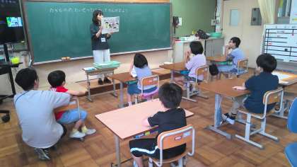 食の学習で食べ物の大切さについて考えています。