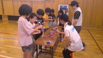 今日は、燃料電池、太陽光発電、レモン電池、手回し発電を実際に体験しています。