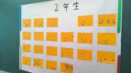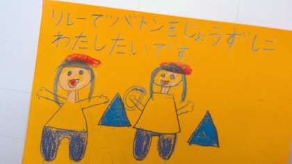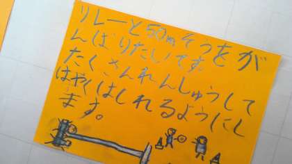 スポーツフェステバルにむけて、何をがんばるかひとりひとりカードに書いています。