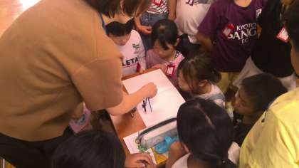 コンパスの使いかたをならっています。