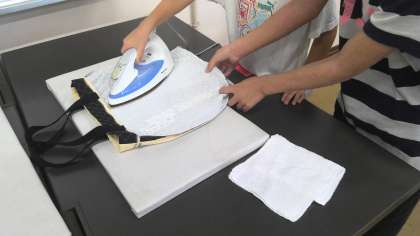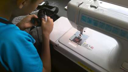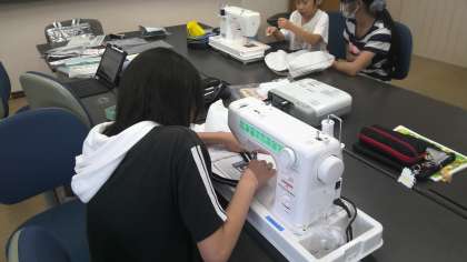 家庭科の授業で、ミシンを使ってトートバッグを作っていました。