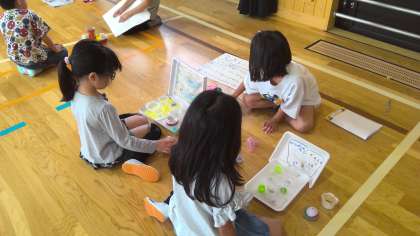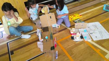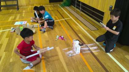 2年生がみのまわりの物で作ったおもちゃやゲームで