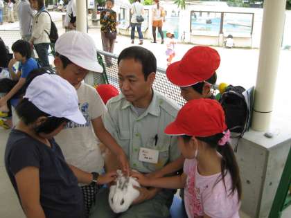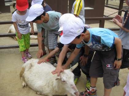 午前中は「おとぎの国」で動物たちと触れ合いました。ヤギの背中を優しくなでたり,一人ずつテンジクネズミやウサギを抱っこさせていただいたりして,1・2年生のみんなは大喜びでした。
