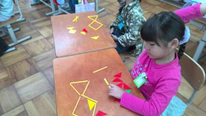 黄色のかぞえぼうをつかって、ならべかたをくうして