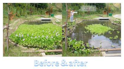 野外学習棟前のビオトープが「ホテイアオイ」でいっぱいになりました。