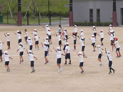 中学年:運動場でYOSAKOIソーラン