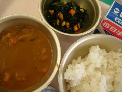 ごはん,牛乳,カレー,ひじきのソティ