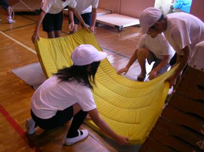 場の工夫など子どもたちが自分たちで素早く準備をしながら練習できました。コンピュータで技の動画も見ています。
