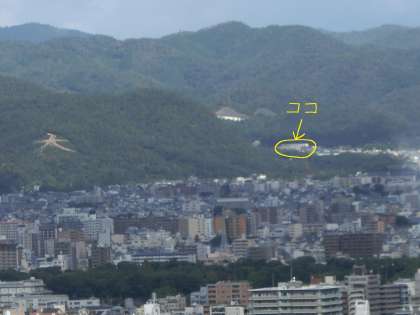 タワーでは,澄み切った秋空の下に広がる京都の町が,大パノラマで広がっていました。よ〜くさがしてみると,写真のように我らが鷹峯小学校がミニチュアで確認できました。双眼鏡でのぞいてみると,目印として3年生の教室の窓に張ったイラストが見えたようですよ。