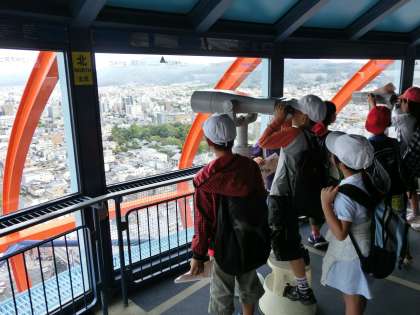3年生の社会科の学習で,京都の町について学習しました。その学習で学んだことを確認するために,今日は京都市内を一望できる京都タワーに行ってきました。