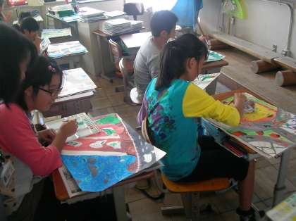 お話を聞いて想像した情景を絵に表しています。同じ話を聞いていても,一人一人イメージは違います。自分なりに感じた世界を一生懸命に表現しています。