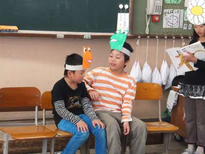 国語科「お手紙」の学習で,会話文をどのように読んだら登場人物の気持ちが伝わるか学習してきました。その集大成として,3つのグループに分かれて音読劇を発表しました。どのグループも練習の成果を出してがんばりました。
