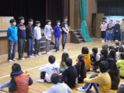 今日は,各委員会が1年間を振り返って一言ずつ感想を発表します。代表委員や本部会など一人一人が自分の言葉で話をしました。予め考えてきているとは言え,原稿を持たずに暗唱して,あるいは臨機応変に言葉をまとめながら大勢の前で話をする経験は,次のステップになる大きな自信につながります。
