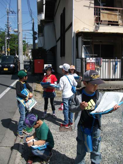 前回調べきれなかった所や,新たに調べてみたい所をグループに分かれて探検しました。ついつい調べることに夢中になりすぎて,メモすることを忘れてしまいそうになりながら,たくさん調べていました。ご協力いただいた地域のみなさん,ありごとうございました。