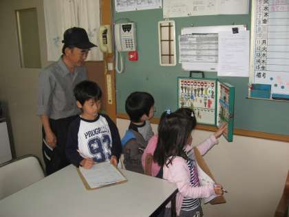 先日2年生に案内してもらった校内を,今日は1年生だけで探検しました。教職員に質問もしました。見つけたことや分かったことをカードにまとめました。このような経験をしながら,徐々に世界を広げていくのです。