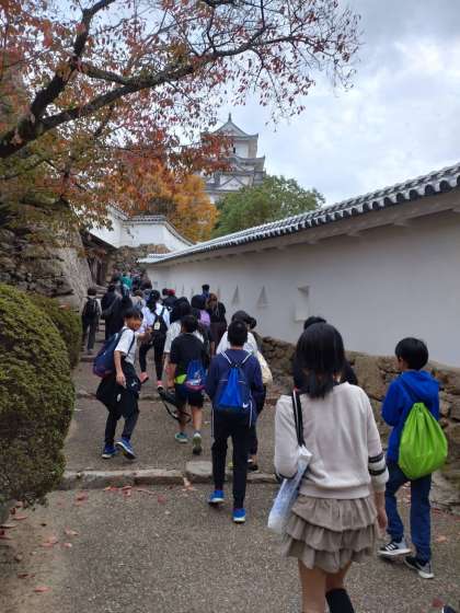 目の前に広がる白壁と壮大な天守閣に、子どもたちも期待で胸をふくらませています。