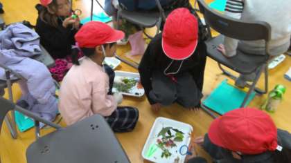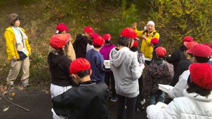 秋の林のなかの草木や葉、落ち葉の下の生き物の観察をしました。