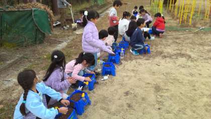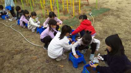 チューリップのきゅうこんを うえきばちにうえつけていました。