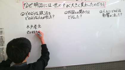 社会科の授業で、幕末から明治の前期にかけての特色について学習しています。