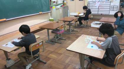 1年生は、ひらがなのことばのよみやかきとりをしていました。