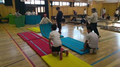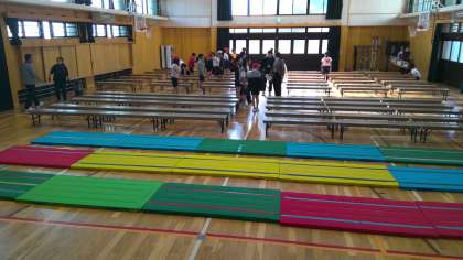 中間休みに、6年生と教職員で学習発表会の会場の準備をしました。