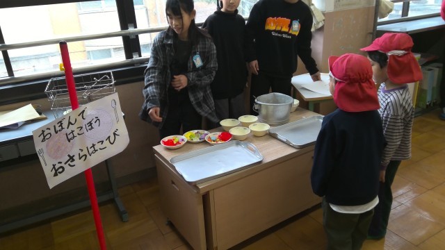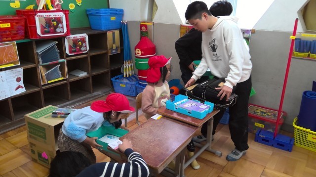 四月に入学する子ども園の子どもたちとの交流会の様子です。