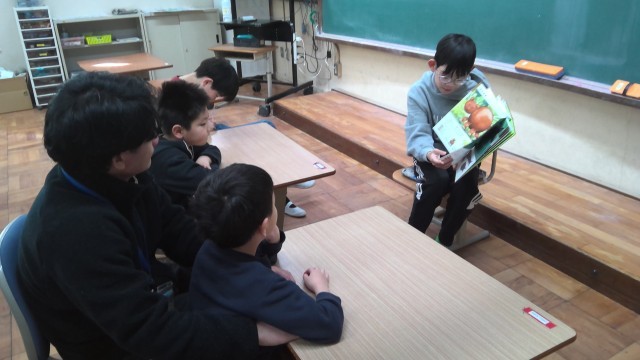 6年生が絵本の読み聞かせをしています。
