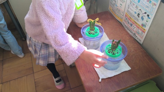 でも、まどべのみずさいばいのヒヤシンスの花のめがのぞいています。