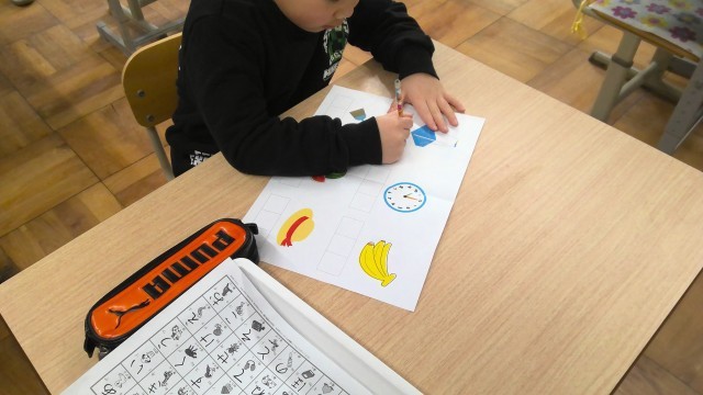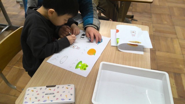 もののの名前の書きとりをしています。
