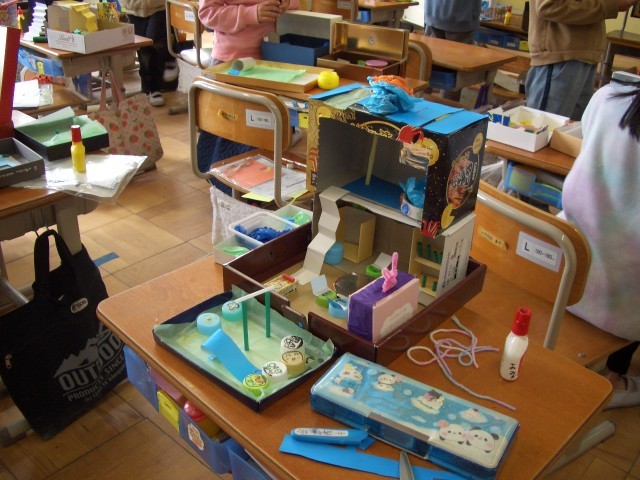 空き箱をつかって、こんなハウスがあったらいいなと制作しています。