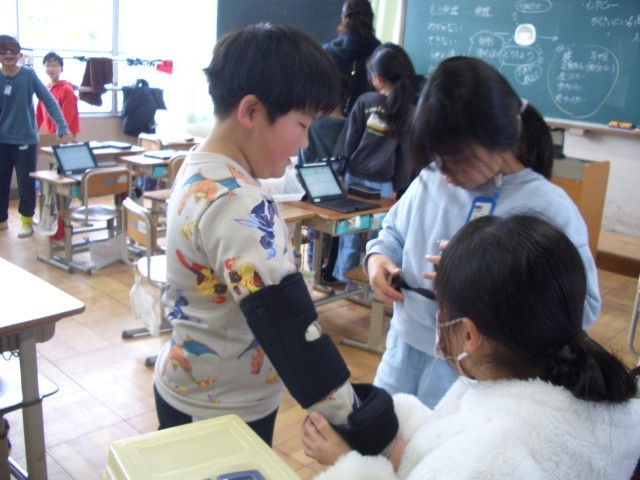 どのようなことが高齢者の方の困りごとなのか、実際に体験するキットを装着してみました。
