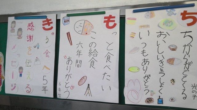 校内の給食週間に、日ごろの感謝のきもちをカルタにしました。