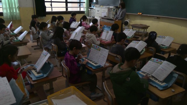 けんばんハーモニカで、演奏しています。