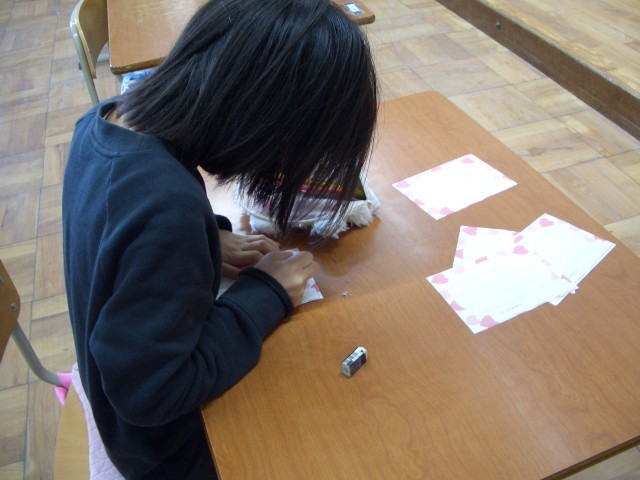 ご卒業される6年生へ、メッセージカードを作成中です。
