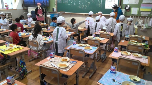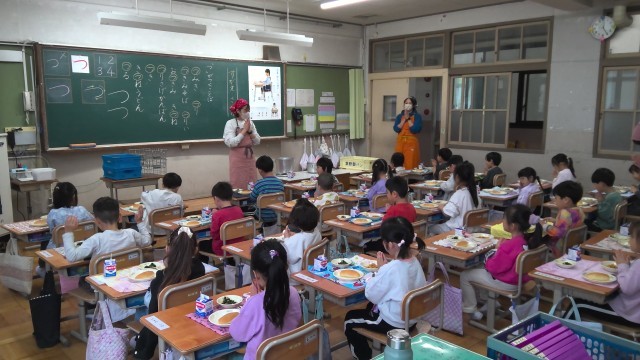 一年生のみなさんおいしかったですか。じぶんたちで、きゅうしょくをくばり、あとかたずけをしました。