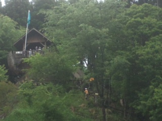アスレチックは、できるところを少しだけ行いました。上に上がると見晴らしがよかったです。滑車すべりでは、ターザンになっていました。