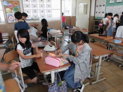 学活の時間以外にも,休み時間や朝の会・終わりの会に,子どもたちが自主的に係活動を進めている姿が見られます。それぞれの係で,学級のみんなへの声かけの仕方もしっかりと考えています。