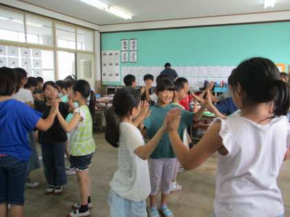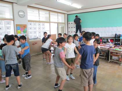 今回の外国語は,「Seven Steps」で歌遊びをしました。輪になって歩いたり,手拍子をしたり,どんどんスピードも速くしていくなどして楽しく学習しました。