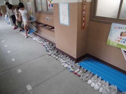 保健室で様々な検診がありますが,上履きをそろえておいています。