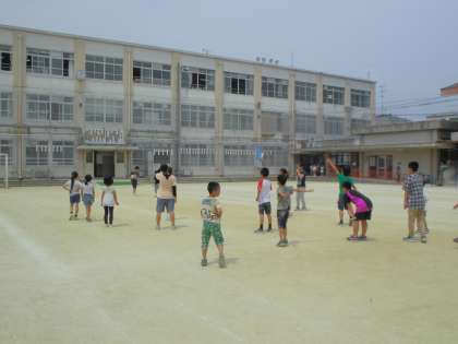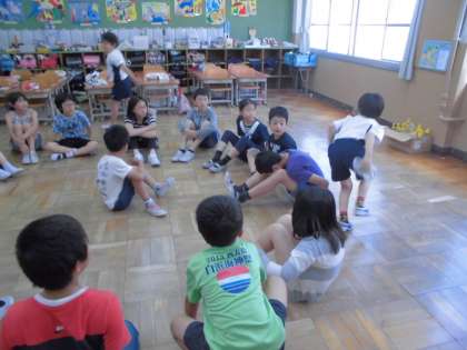 毎週水曜日は「元気に体をうごかそう!」ということで,長めの昼休み「すいすいあそび」という時間を設定しています。また,1カ月に1回は「すいすいなかよしあそび」として,たてわりの「なかよしグループ」で一緒に遊んでいます。「グループのみんなでできるあそびは何かな。」「次は体育館だから,体育館でできるあそびを考えよう!」と,5・6年生が中心となって活動しています。