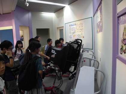 信号機の信号も触らせていただきました。信号は,直径30センチだそうです。110番を受ける通信指令センターを見学した後は,白バイに乗ったり,110番通報体験をしたりするなど,展示物を見たりふれたりして楽しみます。一番の人気は「サイクルシミュレーター」でした。自転車に乗って,画面に映る町の中を交通ルールを守って走ります。最後は,警察官の方から,持ち物やお仕事についてお話を聞きました。