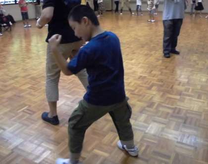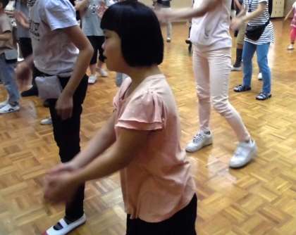 「エビカニクス」のダンスでは,みんな,にこにこ笑顔で踊っていました。