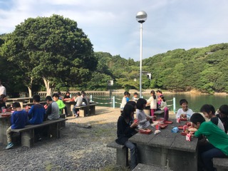 天気もよく気持ちよい風が吹く中、朝ごはんをいただきました。