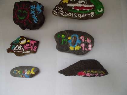 磯観察で拾った石を,ペイントして思い出の宝石にしました。