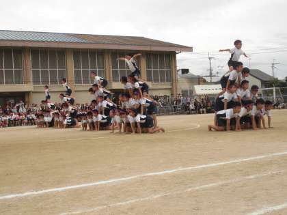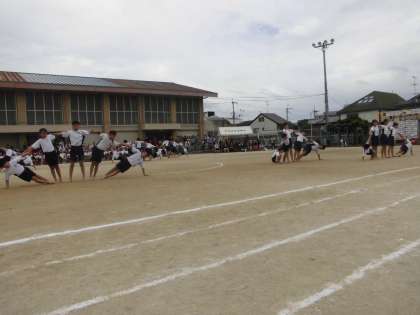 いよいよ組体操の本番を迎えました。練習では,不安だった技もほとんどが成功し,とても完成度の高い素晴らしい演技でした。自分達自身も,心を一つにして集中し,全力を尽くしてやりきったことに大満足な様子で,とても気持ちの良い素敵な表情で終えていました。本当に感動をありがとう!!