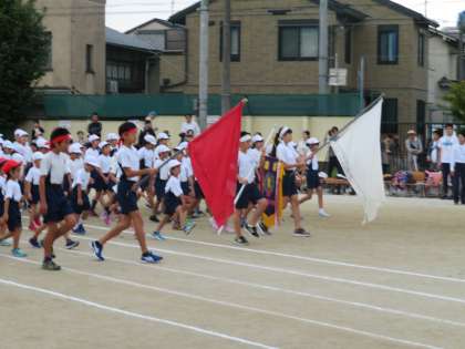 運動会。各応援団の団長による選手宣誓。自分たちで宣誓の内容を考え,何度も練習したことが表れていました。力強い宣誓でした!今年度の運動会のいいスタートをきることができました。