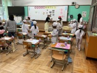 衛生面にも細心の注意をはらって運営していただき,杵もいろいろな学年の子どもに合うサイズを用意していただいたので,一生懸命餅つきに挑戦した子達もたくさんいました。出来立てのお餅を嬉しそうに頬張ったり,おぜんざいの行列に何度も並んだり,校庭に美味しそうないいにおいが漂って,とても和やかなひとときになりました。