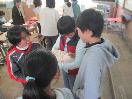 赤ちゃんの成長とともに,母親と絆を深めていく様子を学習し,いのちの大切さを学びました。参観していただいていた保護者の方にも,赤ちゃんのときの様子をインタビューしお話してもらいました。最後に,一人一人の赤ちゃんのときのスライドを流し,大切に育ててもらってきたことを実感しました。赤ちゃん人形を抱いて,赤ちゃんの可愛らしさを想像していました。