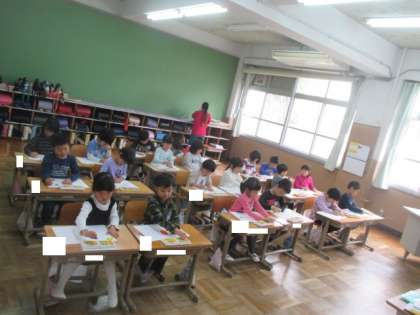 図画工作でパスを使って自分の好きなものを描きました。かぶとむしやお花,友だち,好きな食べ物など素敵な絵ができました。描いた後には,自分の好きなものをみんなに紹介しました。