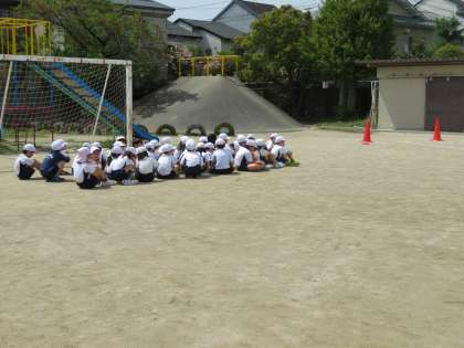 2年1組,2組合同で50メートル走をしました。ゴールをめざして,力いっぱい走り抜けていました!友達が走り出すと「がんばれ〜!」「最後まで!」と大きな声で応援する声が運動場に響いていました。
